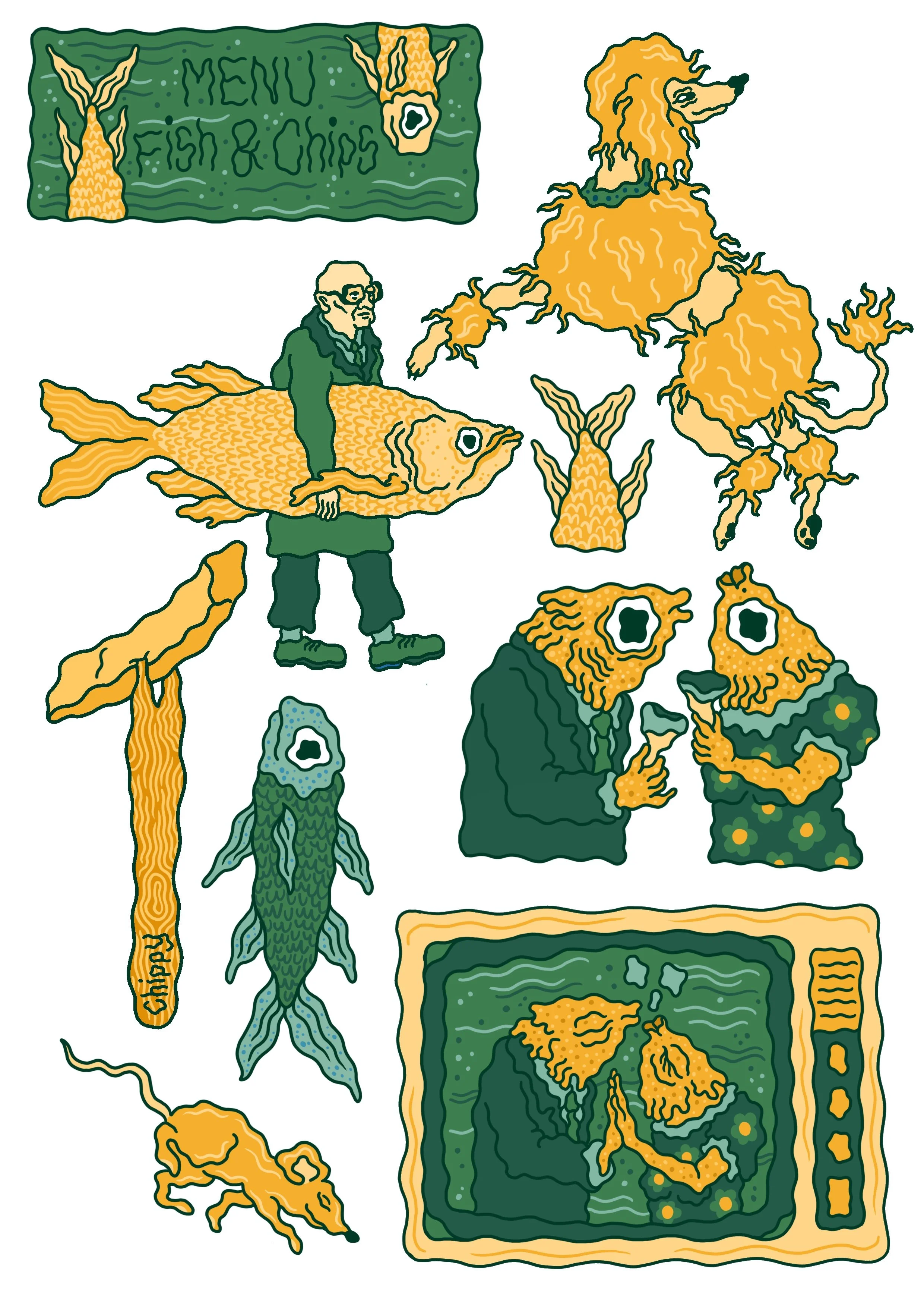 Sticker designs I made to go along side my Bert’s Fish and Chip shop project.